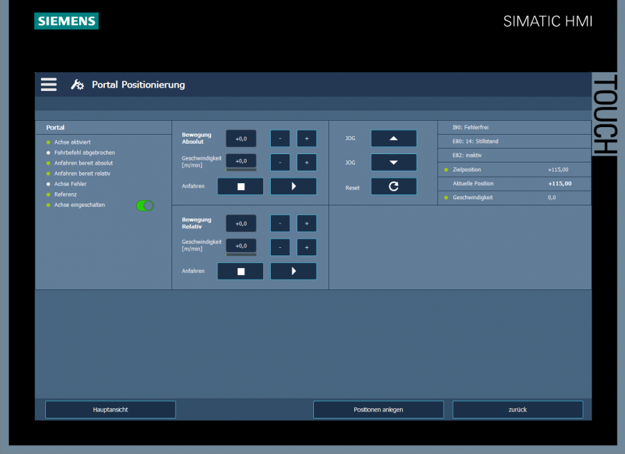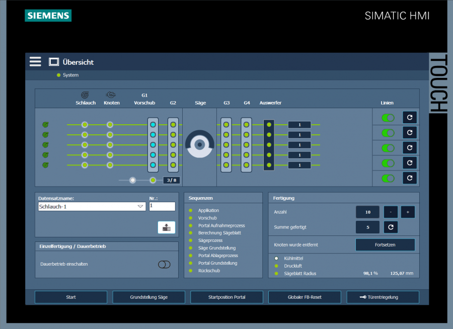 Ebenso möglich ist die Erstellung von animierten visuellen Abläufen. Diese lassen jederzeit den Zustand und Prozessstatus der Anlage und des Werkstücks erkennen.